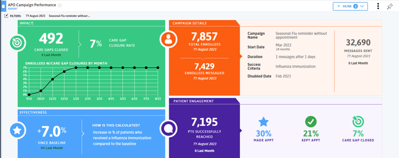 To quickly engage with individuals due for their flu shot, practices with Azara Patient Outreach can enable the Seasonal Flu campaign to text patients who are due for their annual dose. Other campaigns like Childhood Immunizations, Adolescent Immunizations, and COVID-19 Vaccinations can also be enabled to increase other vaccination rates. Practices have the ability to prioritize campaigns so patients aren’t inundated with messages.